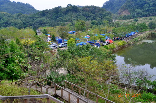 營區旁有一小湖,湖邊有一木製觀景台,由此鳥瞰不遠山莊,景色相當好