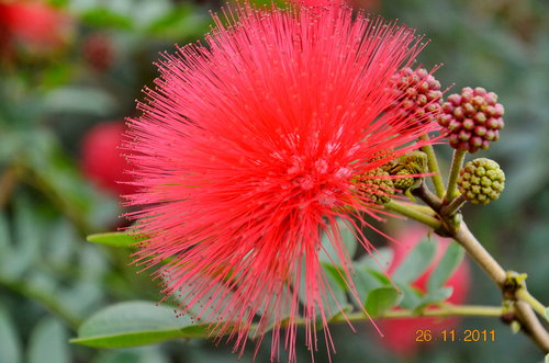 觀景台旁盛開的美洲合歡(俗稱粉撲花),毛茸茸的很美麗