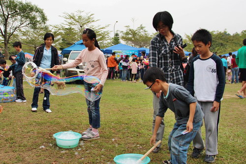 不過一切辛苦都是值得的,豐富精采的節目,除了圖姐贊助的演唱會、摸彩及熱心的義工們精心策劃的闖關活動之外,還加上本月小壽星Lily的慶生會,小朋友有吃、有玩又有獎品拿,快樂得不得了。