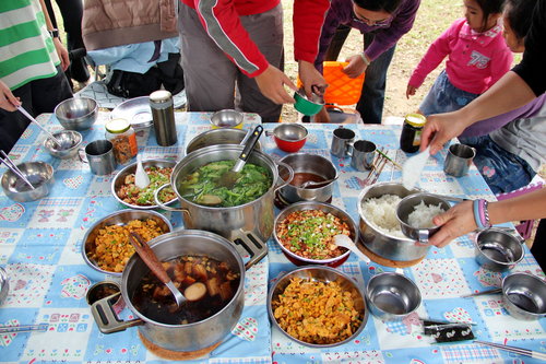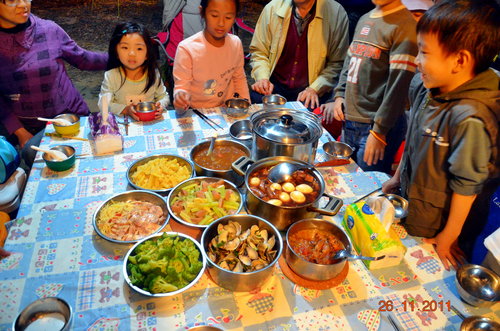 豐盛的晚餐,這次露營特別商請Ben家族帶快鍋來煮飯,露營十幾次,還從來沒煮過飯,這次的菜色還特別下飯喔!