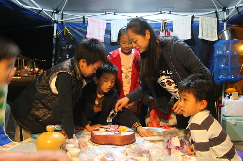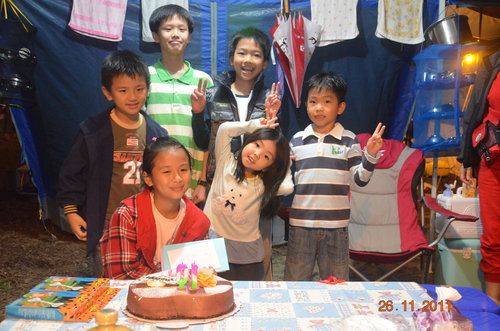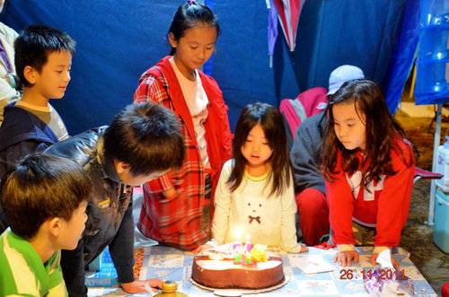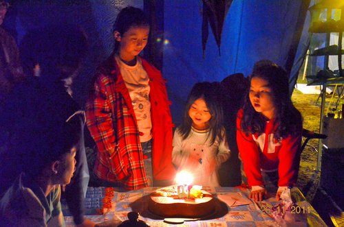 晚上Lily小壽星的慶生會,媽媽還特別訂了一個生日蛋糕準時宅配到營地來,小朋友們高興極了