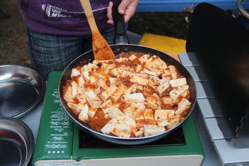 安安麻煮這鍋麻婆豆腐壓力超大,Eric也有幫忙切豆腐喔!