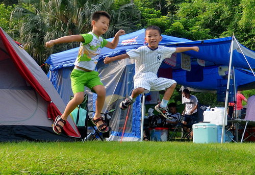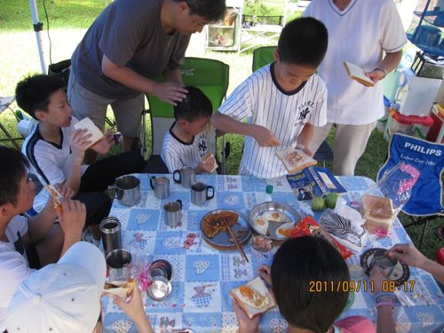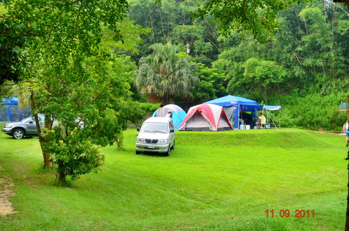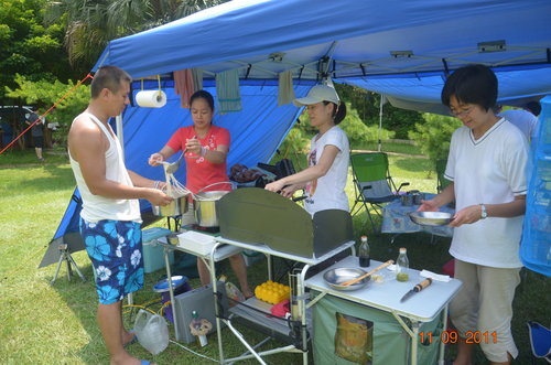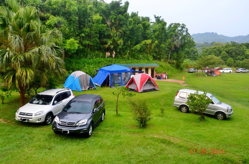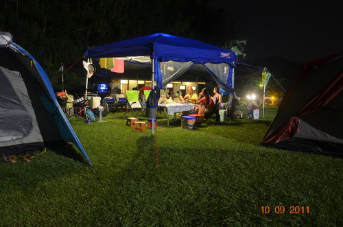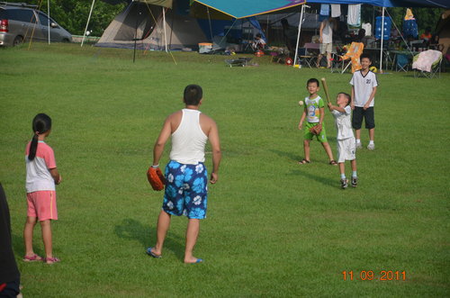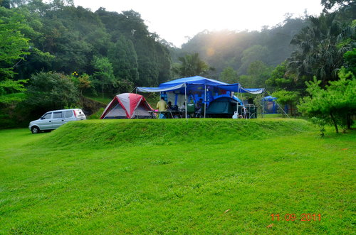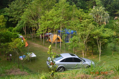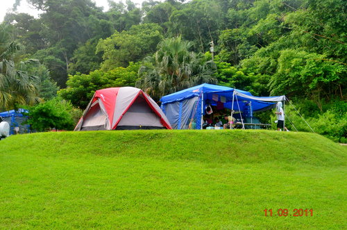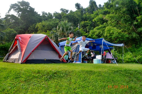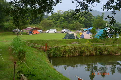 這次有三個家庭一起參與,老老小小共13人參加。露營陣容越來越龐大,快要可以組一個露營車隊了。今年五月份來此露過一次,對於此處優美的環境印象深刻,當時正值桐花季,營地後方魚池邊的油桐花正盛開著,老闆熱心又親切,不時會過來打招呼,營區有老闆精心照顧的美麗草皮,涼亭、羽球場、半場籃球場,加上五星級的乾濕分離衛浴設備,還有魚池可供露客垂釣,上次看到每個釣客都大豐收,這次也要準備釣具來大顯身手一番。