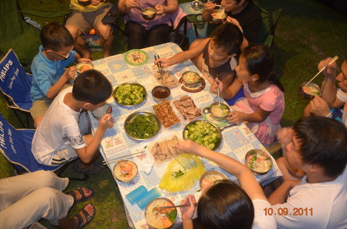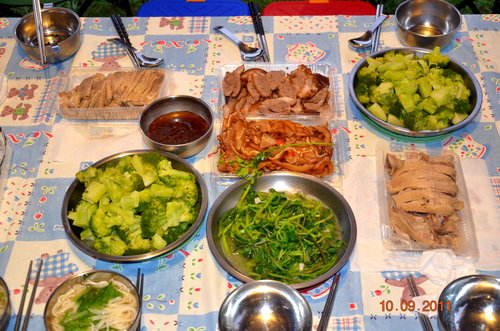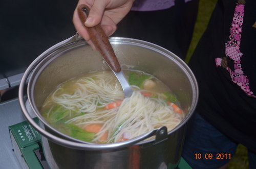 第二天中午除了新鮮美味的現釣吳郭魚加菜,再下一鍋湯麵,簡單吃一餐,吃飽了回家過中秋
