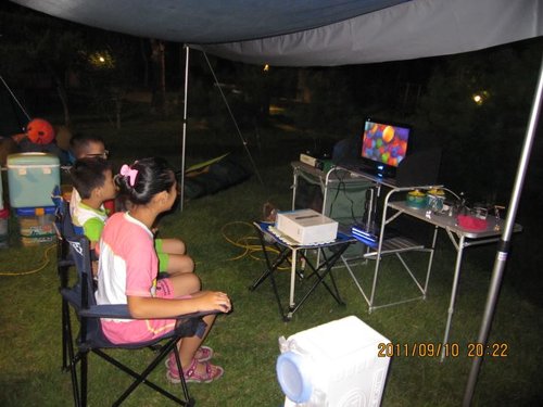 小朋友有露天蚊子電影院可以欣賞卡通,大家都穿短褲,這下蚊子真的有福了