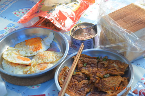 我們可口的早餐,吐司夾荷包蛋、蔥蛋、鮪魚、肉鬆,還有咖啡、麥片、美露...任君挑選