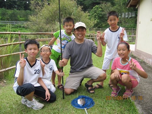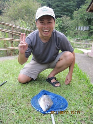 第一天用自備的魚具&魚餌到這魚池想大顯身手,但釣了半天也不見一條魚兒上鉤,老闆看不下去,過來露了一手,拿過我的釣竿,灑下一把魚餌,不道30秒,一條大吳郭魚就上鉤了,看到我下巴差點掉下來。