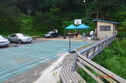 魚池上方還有一個羽球場以及半場籃球場可供露客施展一下筋骨