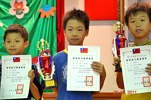 考了一個上午,中午現場頒獎,看報名表的說明,前50%都有獎盃(已經算皆大歡喜),前80%有獎狀,我想哥哥拿獎盃應該不是太大問題。公布結果,哥哥僅拿到第四名(前25%~50%),雖有獎盃,成績算差強人意,不知是否補奧數的學生較強,還是哥哥有退步。之前有放牛吃草,叫他自己複習,看來還不行,媽媽還是要帶著複習,下次再加油了。哥哥腦筋不錯,有數學的慧根,不過常常因粗心而看錯題目!這點得好好加強。